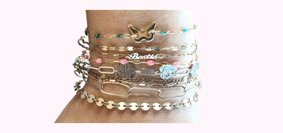 Bracelets are strung on durable elastic for a perfect fit, and our custom permanent jewelry is welded to your exact size. Every piece is designed for everyday wear — simple, elegant, and made to be lived in, layered, and loved.