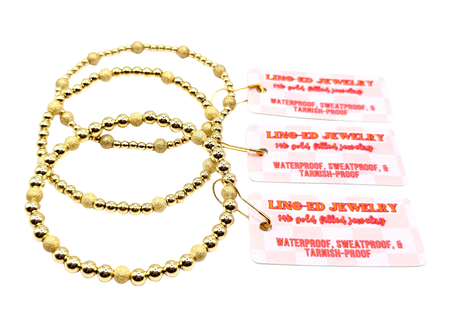 Our gold-filled bracelets offer the perfect blend of beauty and durability. Each piece is made with high-quality 14K gold-filled beads, containing a thick layer of solid gold that’s pressure-bonded to jeweler’s brass for long-lasting shine and resistance to tarnish.