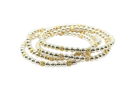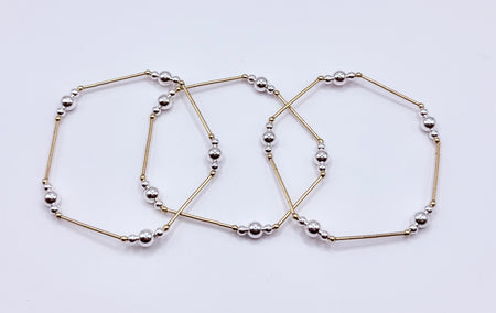 Our mixed metal bracelets blend the warmth of 14K gold-filled beads with the cool shine of sterling silver, creating a versatile look that complements any outfit. Each piece is handcrafted for effortless layering — striking the perfect balance between classic and modern.