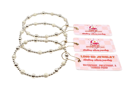 Our sterling silver bracelets bring a sleek, radiant shine to any look. Handcrafted with .925 sterling silver beads, each piece reflects effortless sophistication — perfect for stacking, mixing with gold, or wearing solo for a minimalist touch.