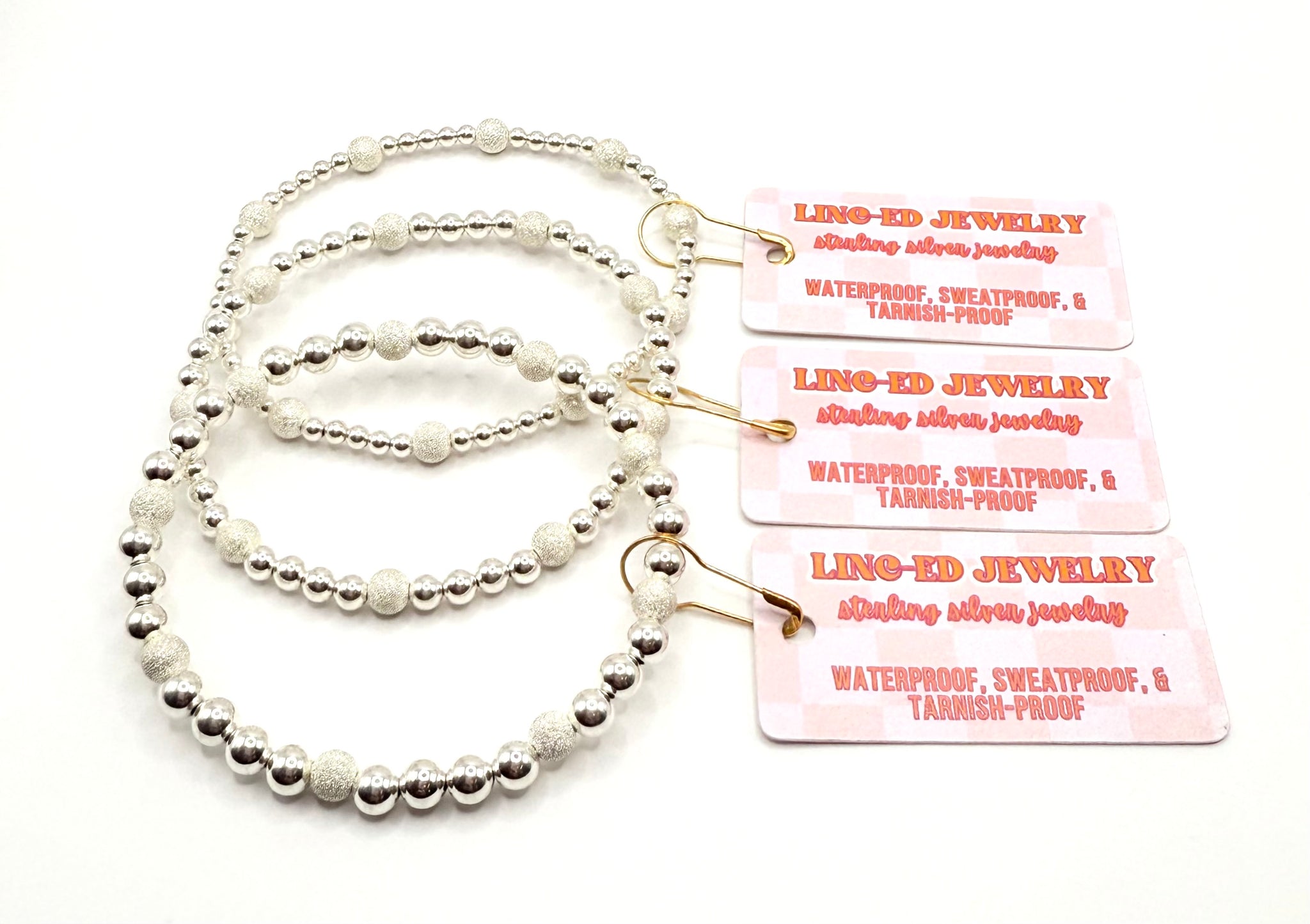These elegant stretch bracelets are crafted with a mix of high-polish sterling silver beads and stardust-textured sterling silver beads, creating the perfect blend of shine and subtle sparkle. Available in bead sizes 3mm, 4mm, and 5mm, each bracelet adds a touch of timeless sophistication to your everyday style.
